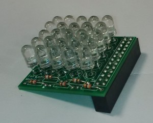 | Gert, creator of the Gertboard and Gertduino, and all-round good egg, has really been getting into the Christmas spirit this year. He’s designed the world’s simplest Raspberry Pi add-on board – a 5×5 matrix of LEDs driven directly from the GPIO pins which I’m going to christen the Gertenlights. Yesterday he brought 100 parts kits into the Broadcom office and announced a lunchtime “matrix grab”, prompting a good fraction of us to descend on the kitchen to collect our free toys. Going to break out the soldering iron this evening. The ravening hordes descend on the kitchen. Andrew Holme, of homebrew GPS fame is in profile on the left. |