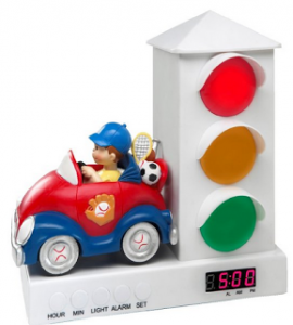 | The trusty alarm clock is a great tool for little kids who insist on getting out of bed very, very early and waking Mum and Dad many hours before it’s time to get up. It’s a simple enough trick. Give the child the gift of a proper, grown-up alarm clock; and inform the child that unless the bell has rung, it is still night-time, and that they should stay in bed. It works like a dream for some families we know, but this method is a bit less effective with some kids. If you can’t tell the time yet, and if you believe you may have slept through the ringing/that it has been turned off by fairies, you may find your tiny self prone to ignoring your proper, grown-up alarm clock, and jumping up and down on Mum and Dad’s soft parts at five in the morning just because you can. Blogger and parent Tycen has found a solution for his non-time-telling kid. He spotted this object in a shop for $35, and, like many of us do when confronted with that number, decided he should make one with a Raspberry Pi instead of buying it. The idea here is that the traffic lights can be programmed: when the light is red, it’s time to be in bed, and when it’s green, it’s time to get up. The yellow light just operates as a night light. The beautiful thing about making your own version of something like this with your kid is that they’ll become much more invested in it than they might if you just hand over something you’ve bought in a shop. Tycen’s version doesn’t have the moulded plastics, and might not be as pretty as the toy-shop version, but it’s something his son has helped to make, so it’s much more meaningful and precious to him as a result. The setup’s very simple: basically all this box does is to run a cron job. There’s a button to press at bedtime which turns the light red. Tycen says: “Apart from the watch script on the button, everything else just runs out of cron. At 6:30 the red light turns off and the orange light comes on. Then, at 7am the orange light turns off and the green light comes on. The green light will stay on until you press the button at bed time to turn the red light back on. I put in a cron job to turn the red light back on at 10pm just in case we forgot.” We love it; the parents at Pi Towers are going to be making their own versions over Christmas. Thanks Tycen! You can find build instructions and code at Tycen’s blog, and a sleepy little boy at Tycen’s house.
