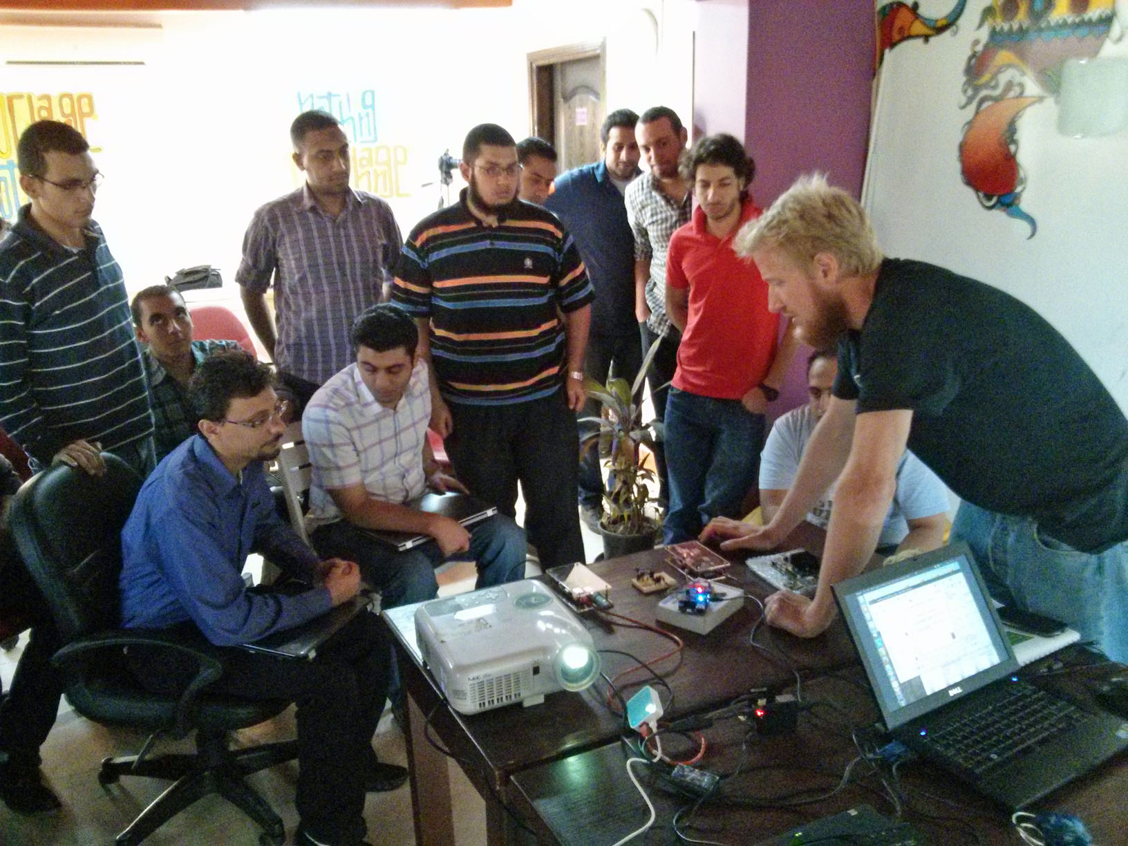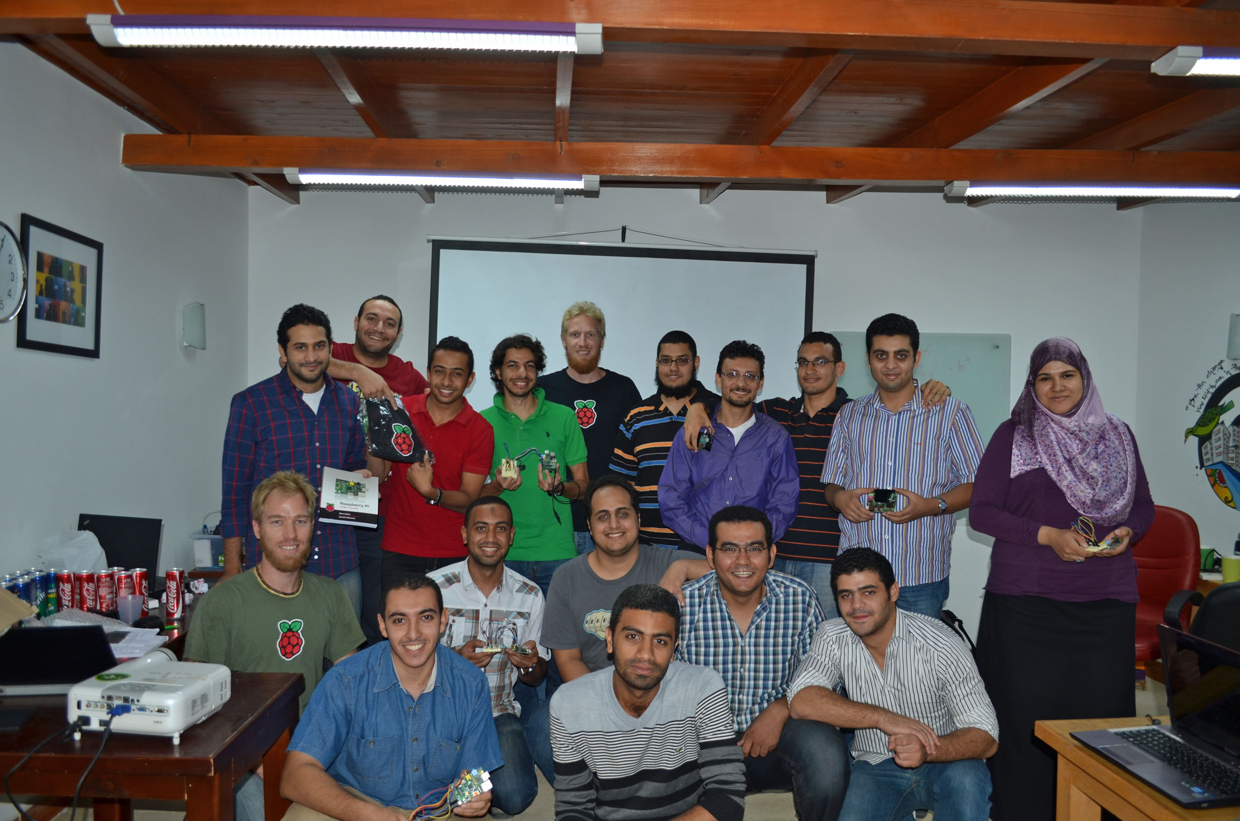 Due to the current situation in Egypt, it took us almost two months (and two freight ships) to finally get the car and ourselves from Turkey to Cairo. On the 25th of October we had our first full workshop in Cairo, Egypt. The workshop was hosted by The District and ICE Cairo, both business incubator hubs helping new start-up companies to get on their feet. We ran the workshop for a group of about 20 people all with slightly different technical backgrounds (we had 10 Raspberry Pi kits available for the event). We start the day by looking at the company ARM Ltd and discuss topics such as the ARM business model, the ARM ecosystem and typical design cycle of an ARM based System-On-Chip (SOC). We then introduce the ARM based Raspberry Pi and discuss the capabilities of the board, and look at the available peripherals. One focus area of this course is Embedded Linux so we then dive straight into Linux application development and we explain how the GPIO, networking and threading API works under Linux. The practical sessions take them from setting up the SD card to completing their first Python program by which they use the GPIO ports to access a simple electronic circuit which they have built on a breadboard using discrete components. The second half of the course focuses on the Linux kernel and root filesystem. We discuss some of the Linux kernel default configurations for the Raspberry Pi and then look at the Buildroot environment for compiling a custom minimal embedded root filesystem. Finally, we discuss some of the popular filesystem types and consider the problem of corruption on power cuts. The practical sessions gives each person a chance to build a complete kernel and root filesystem from source and set up the SD card from scratch. We had a fantastic time in Cairo and are looking forward to our next stop in Addis Ababa in Ethiopia where we will meet up with people form ICE Addis. Raspberry Pi is sponsoring the practical kits for the workshops we are running – thank you guys! If anyone is interested in attending or hosting an ARM/Raspberry Pi workshop in Africa in the future, please send us an email or visit our Facebook page. You can track our current location here. |