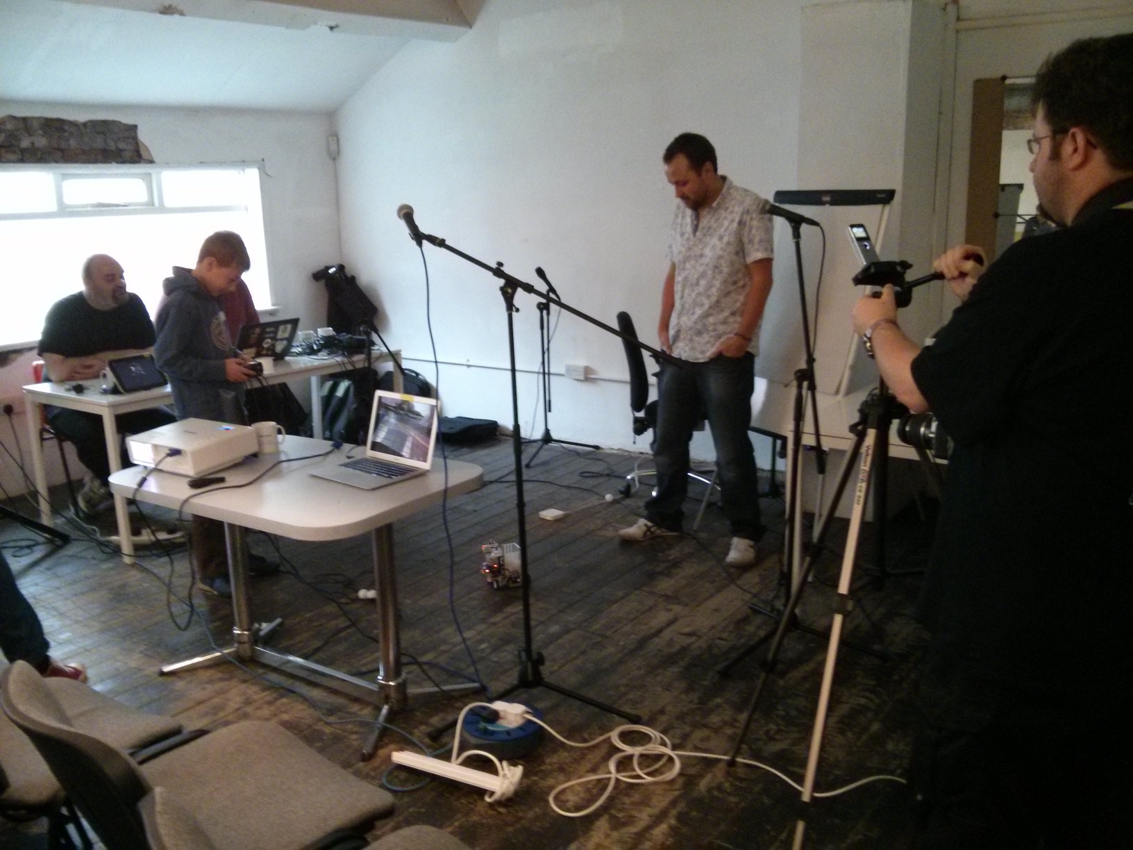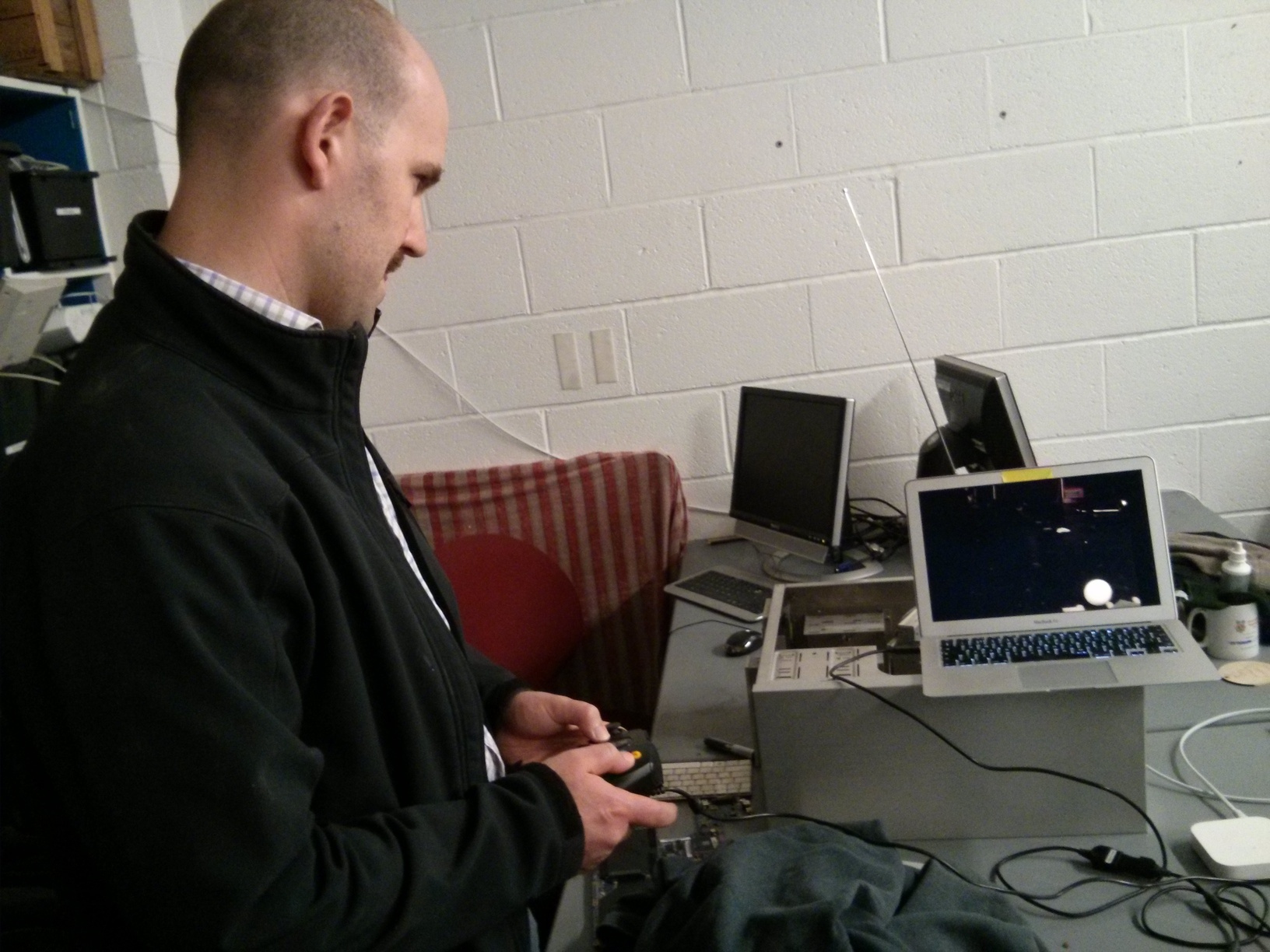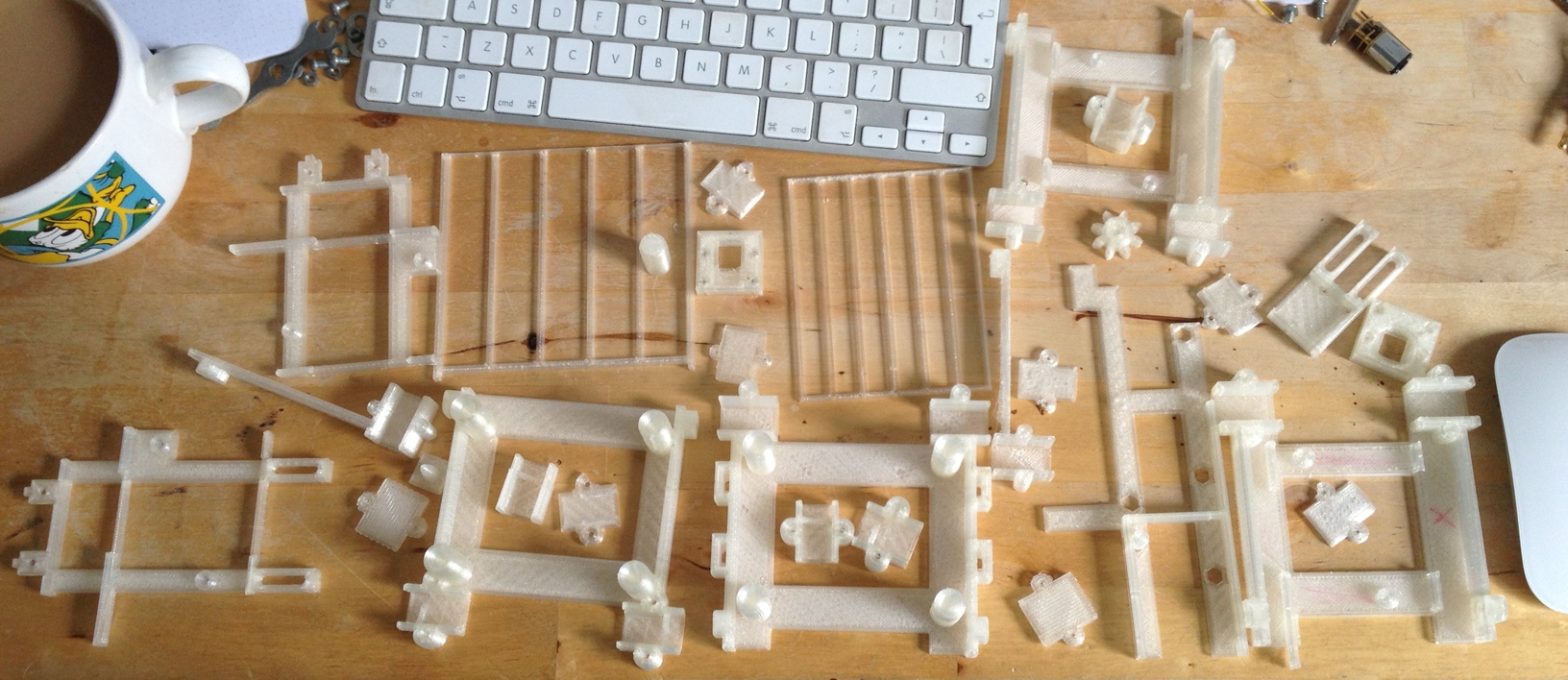 | Will Jessop is a systems administrator for 37signals and he runs the North West Ruby User Group in Manchester. I bumped in to him recently and discovered he was working on a personal project with a Raspberry Pi. The aim of the project is to solve the problem of ping pong balls on the floor at the 37signals office in Chicago. The solution is a web-enabled robot with mounted camera allowing people to collect balls in to a basket. The original version of the robot used the Custard Pi breakout, and then I suggested he looked at the MotorPiTX motor controller developed by Jason Barnett. He ordered one and joined Manchester Hackspace and began working on building or otherwise sourcing all the parts needed for the robot. Finding the new motor board much neater sitting on the original chassis, Will proceeded to design and 3D print motor mounts, caterpillar track mounts, a new base, a ball basket, and then added a mounted picamera with fish-eye lens. With a neat little camera robot, Will looked at options for battery powering it so it could roam free. Looking at power requirements and testing its usage while running the motors and streaming video over wireless, Will opted for a 5000mAh 7.4V lithium battery. He also added a lifter arm to the chassis, controlled independently of the robot itself. All the software on the Pi is written in Go, which Will sees as a great language for the Raspberry Pi as it creates small, efficient, statically compiled binaries that easily fit within the resource limits of the Pi. This runs alongside Will’s gamepad library (in C, available as a Ruby gem) on a laptop. Will also wrote a power control script to aid clean Pi shutdown via the MotorPiTX. With the robot roaming free on its new battery, controlled by an xbox controller, the camera feed streaming over wifi, and the lifter arm functional, it was ready to present at the 16th Manchester Raspberry Jam! On a tour of the Manchester Hackspace during the Jam, Eben, Liz and Pete got to see it in action. Eben got hold of the controller and took it round picking up ping pong balls by watching the video stream on the laptop. Will then took the robot to Miami to show it off at RubyConf, where many Rubyists got to have a play with it. Robot picking up ping pong balls: Robot’s eye view: Check out the series of posts on Will’s blog. Thanks to Manchester Hackspace and Jason Barnett for helping to facilitate the project. The robot’s not been placed in the 37signals office yet, but when web access to it is available, we’ll be sure to post the link so you can all have a go! Will also wrote a Go library for the Pimoroni Piglow: github.com/wjessop/go-piglow. Go and take a look, have a play, and let us know what you think! |