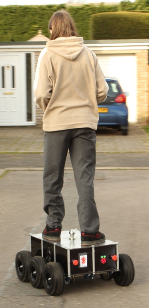| PiBorg are an organisation making add-on boards for your Raspberry Pi. Recently they produced the biggest and most powerful Pi robot we’ve seen so far, using one (six, actually) of their motor boards: the resulting DoodleBorg is a three-horsepower beast powered by motorcycle starter motors. To all intents and purposes, it’s a small tank. With a dear little nobble on top for hitching things to. The DoodleBorg has a Raspberry Pi for brains, and uses six of PiBorg’s PicoBorg reverse motor controllers, one for each wheel. It kicks out 2.1 KW – which is to say, around three horsepower, or more than my French teacher’s car had. (We’ve been discussing in the office what you might be able to do with such a mighty robot: Clive wants to run a Magdeburg hemispheres experiment without the horses; I want to pull a tractor trailer full of builders’ rubble – unfortunately, I happen to have one of those at the moment. Dave wants to set up a tug of war against a class of kids, and then stick his car in neutral and tow it around a field while shouting “Yee ha!”.) We’ve never seen a Pi look so insignificant in comparison with the robot it’s powering: we see lots of robots which are basically a Pi on wheels, whereas the Pi is completely lost in the body of this one. Best of all, the whole thing is sent commands via a PS3 controller. Did I mention that we think it’s completely brilliant? Raspberry Pi IV Beginners (a YouTube channel you should really check out) went to interview Team Borg about their metal monster. (Yakkety Sax makes even the best things better: ten hundred internet points to Raspberry Pi IV Beginners for observing this.) You can buy PiBorg add-on boards for your Raspberry Pi (the LedBorg is a particular favourite in our office) from PiBorg’s website and from Mod My Pi. If you end up making something even a tiny bit as cool as this, let us know. We like robots.