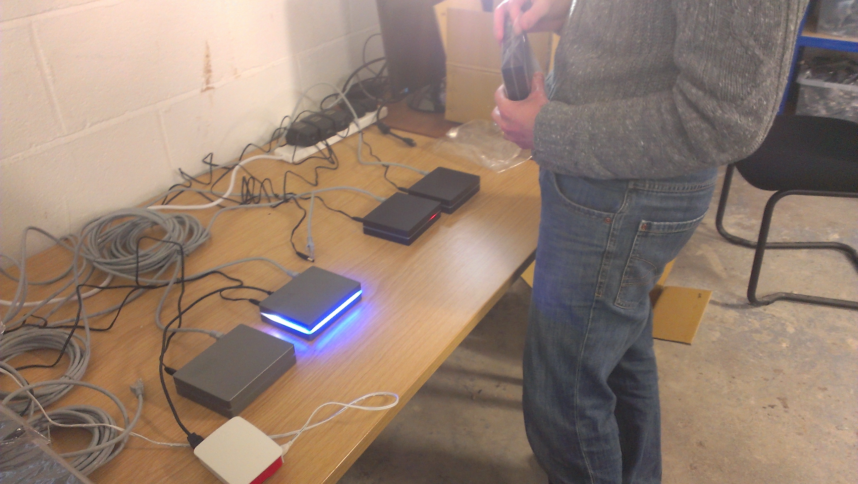 | Back in August 2014 we got very excited about one of the first Kickstarter projects to use the Raspberry Pi Compute Module. We’re pleased to announce that after much hard work, many late nights and far too much sugar and caffeine, the FiveNinjas team have started shipping actual real Slices to backers. Here’s a picture of Gordon and Jon working their ninja magic in a cold warehouse somewhere in deepest darkest Sheffield; the racking that can be seen in the picture contains parts for 1500 Kickstarter Slices. We believe Slice is the first Kickstarter project using the Compute Module to start shipping to backers, narrowly beating our other favourite project the OTTO Camera (which also seems to be very close to shipping!). One of the things we wanted to see with the Compute Module was people using it to do just this type of thing – leverage the Raspberry Pi technology to create innovative and high-quality products with minimum resources, something that has historically been a difficult challenge. The FiveNinjas team includes our very own James Adams and Gordon Hollingworth, who have been spending large amounts of their spare time working on the Slice hardware and software and, in doing so, discovering exactly what it’s like to build a product using the Compute Module and mass produce it. In the process a few wrinkles have been found, but mostly it has been a big success, and there’ll be another blog post soon from Gordon on the process used to test and program Slice in mass production (which is a very important and often overlooked part of creating a real product). We’ve been told that to get the cost of the Slice motherboard down to an affordable level the Ninjas had to make a minimum order of 3000 Slice PCBs, so there are 1500 more Slices that can be built relatively quickly once the Kickstarter units have all been shipped. If you missed the Kickstarter and want to grab one of these extra units, head over to the brand new FiveNinjas store! |